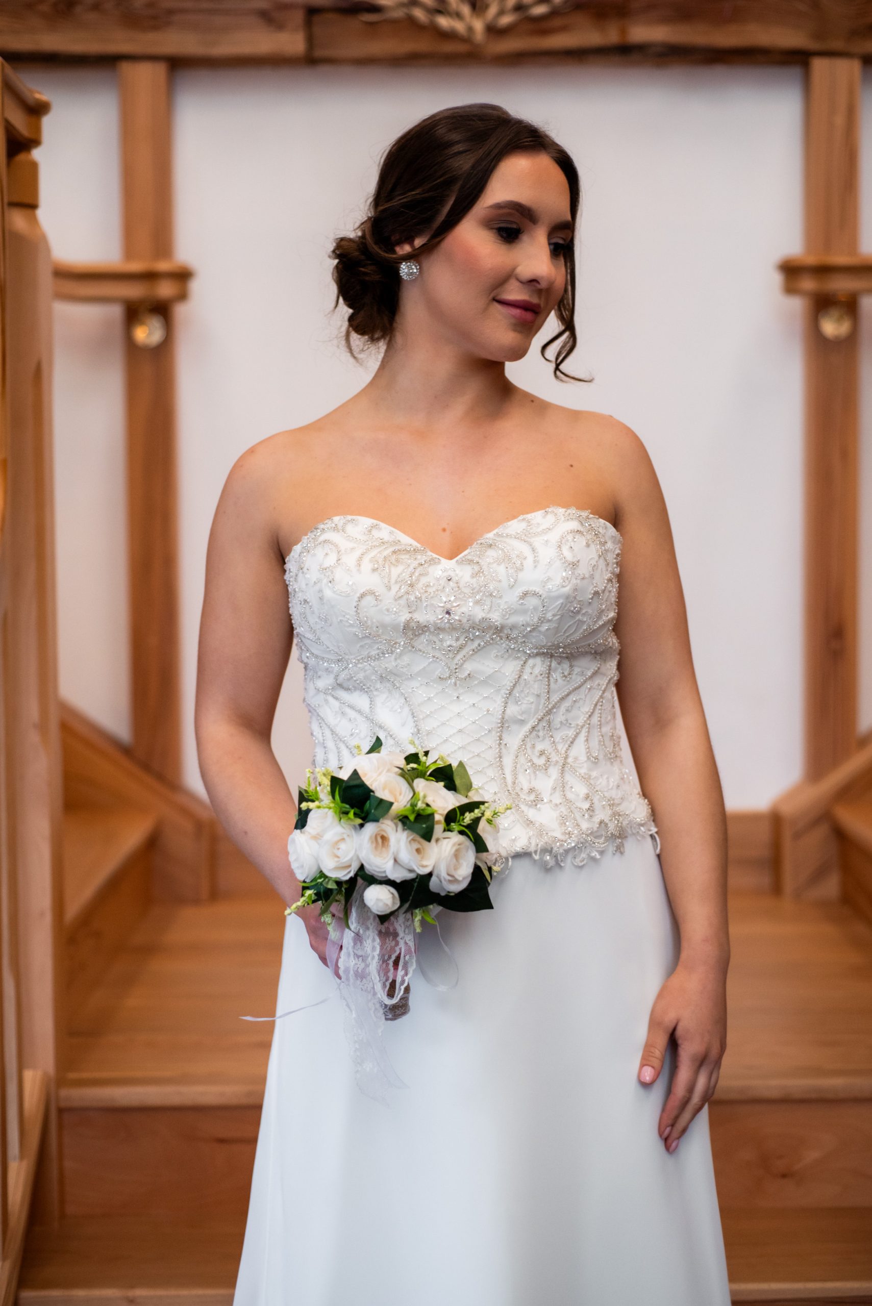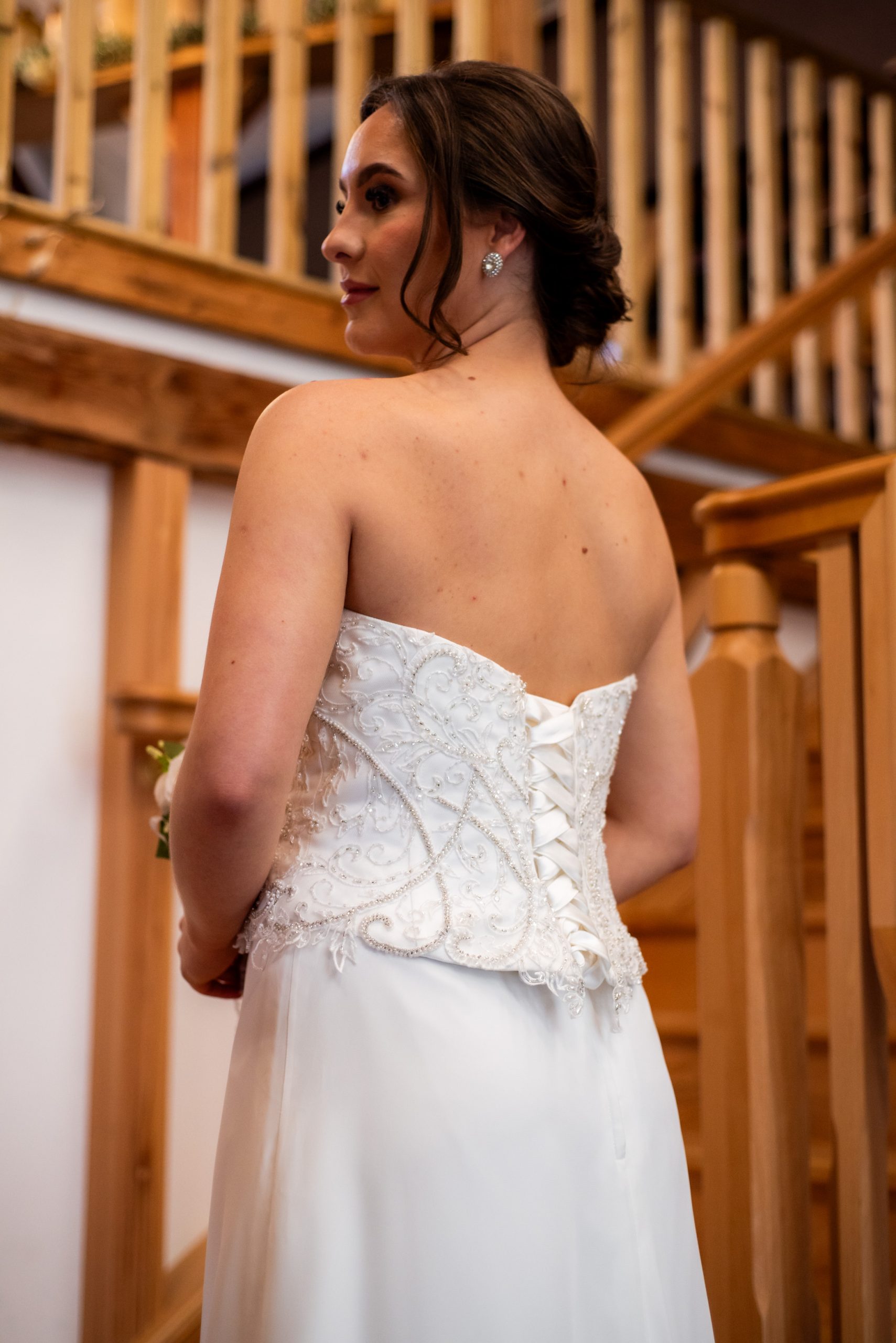 This two piece consists of a separate bodice which has a sweetheart neckline, and is a lace up. The detail on the bodice uses beads, crystal and pearls to create a stunning artwork design. The skirt is an A line shape in a soft chiffon, and benefits from a court train. The skirt has a zip closure. Together they make an elegant column dress. Measurements as a guideline are… Bust 98 (38.5″), Waist of skirt 82cm (32″), Hips 118cm (46″), length of skirt at side seam 131cm (51″). Fabric is Polyester.