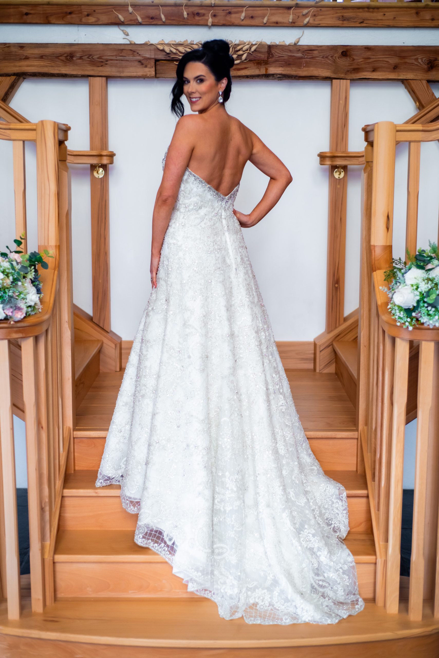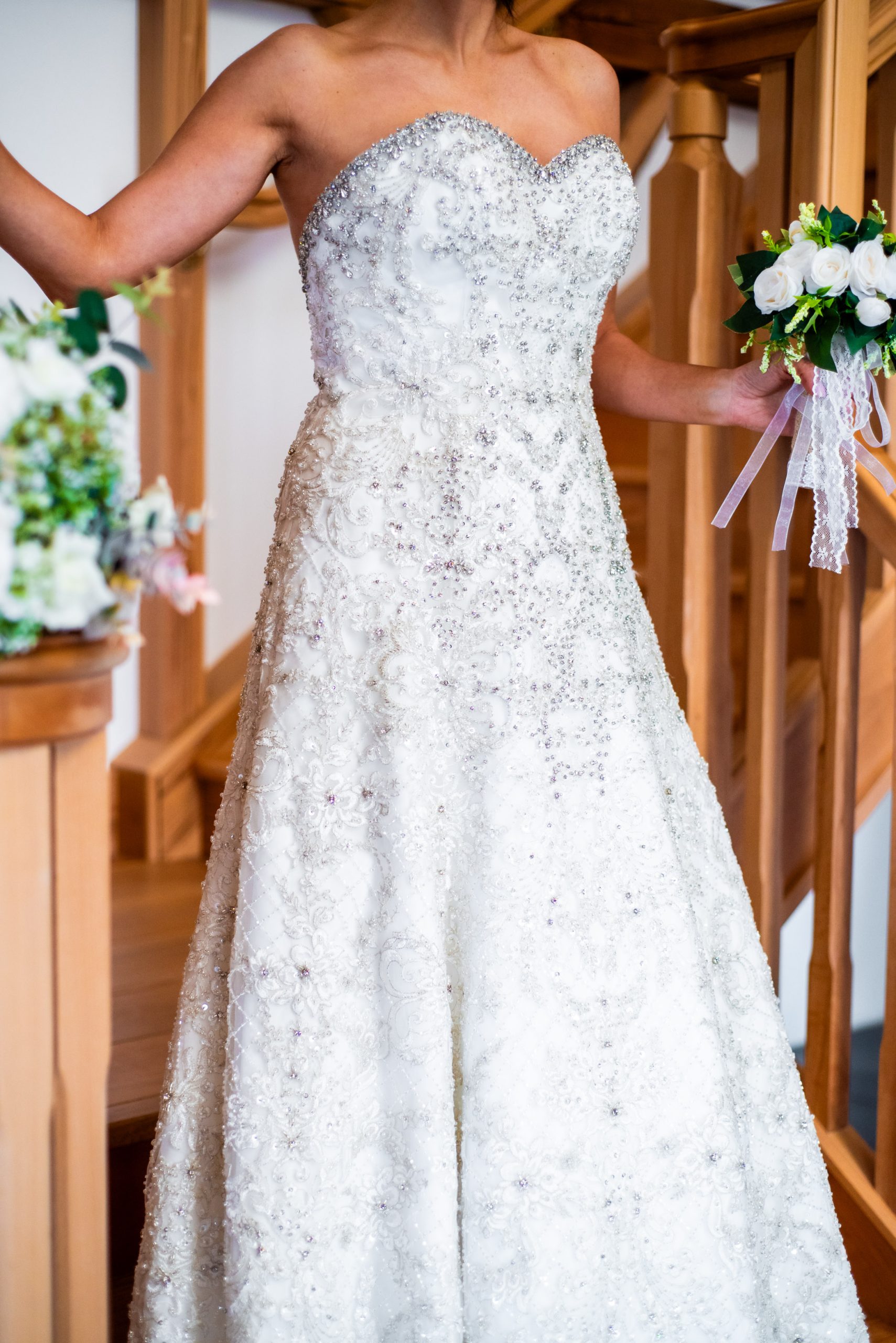 Stunning heavily beaded A line Ivory dress studded with crystal, beads and sequins.